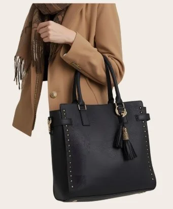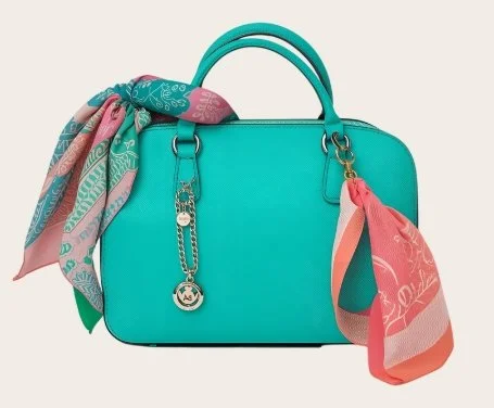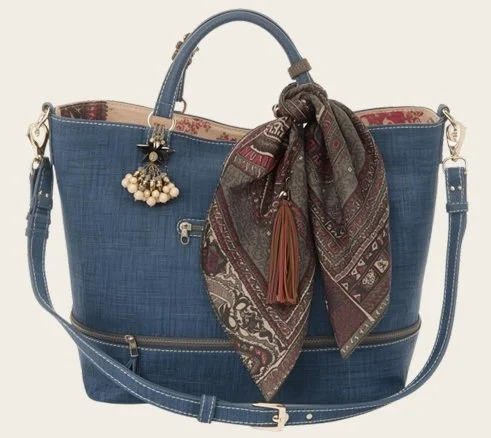 Example: A tote with a removable scarf tied around the handle is both cute and practical which is perfect for daytime outings and evening fun.
